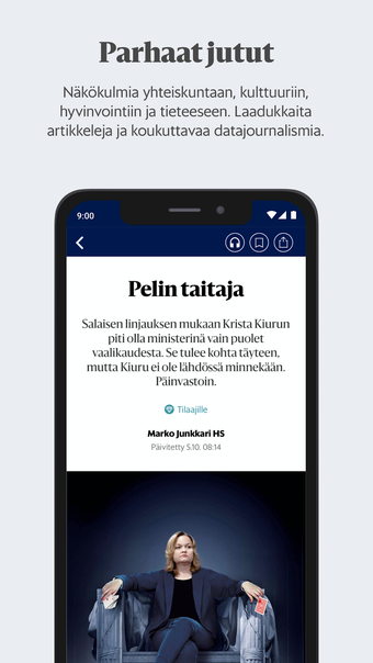 En tant qu'abonné, vous bénéficiez d'articles approfondis et de rapports spéciaux qui ne sont pas disponibles ailleurs. L'application permet également d'écouter les nouvelles et de sauvegarder les articles les plus captivants pour une lecture ultérieure. Avec une interface conviviale, Helsingin Sanomat se positionne comme une ressource essentielle pour ceux qui souhaitent se tenir au courant des développements mondiaux.